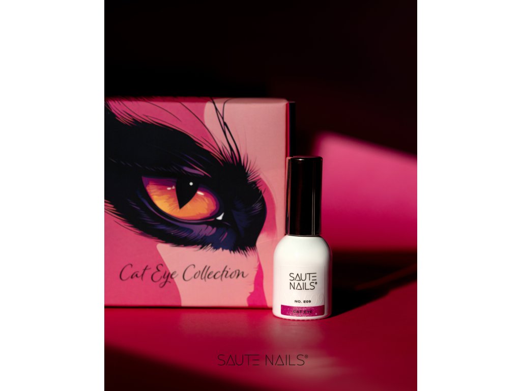 Cat Eye E09 je intenzivní, neonový odstín malinové růžové, který při použití magnetu odhaluje zářivý růžový odlesk. V provedení bez magnetu vytváří efektní třpytivý lesk s růžovým odrazem.