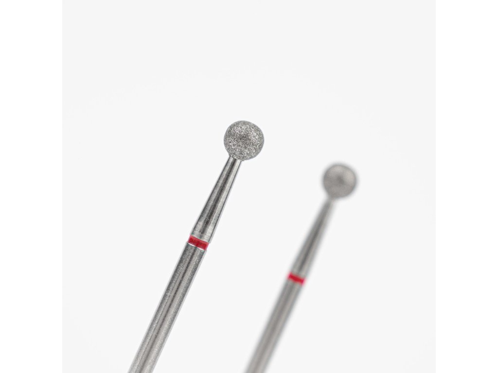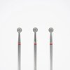 Diamantová fréza jemná ve tvaru kuličky s červeným označením. Dvojitá vrstva umělého diamantového posypu zajišťuje pomalejší opotřebení a delší životnost. Díky svému jedinečnému tvaru se hrot při práci nezahřívá ani nevibruje.