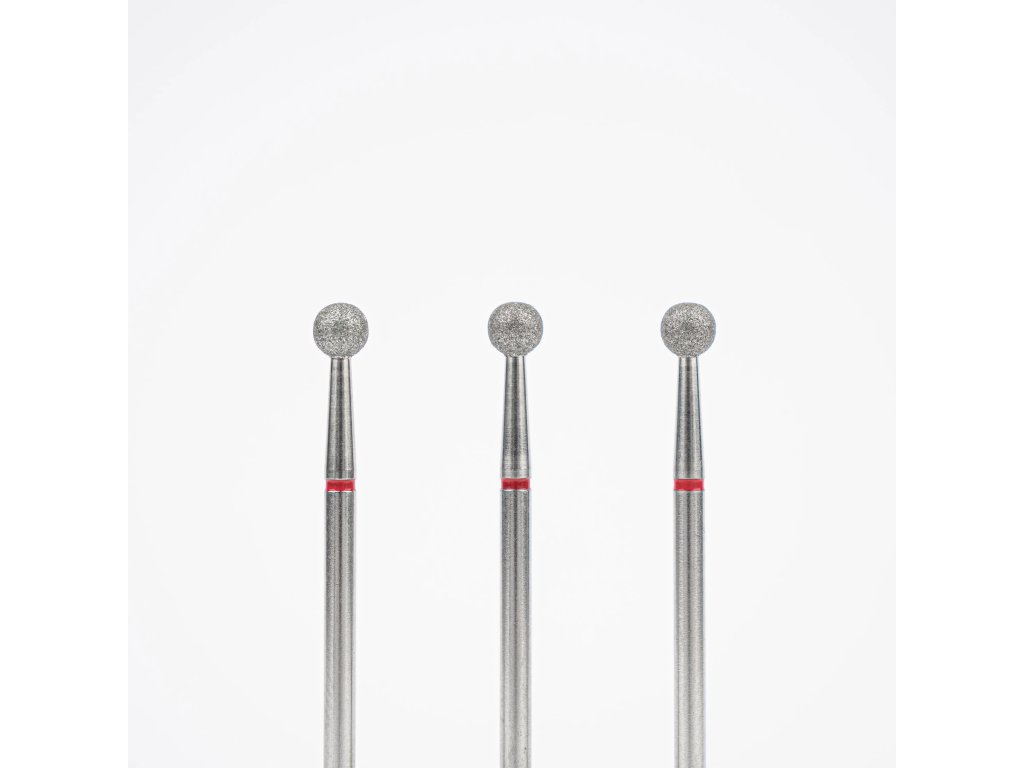 Diamantová fréza jemná ve tvaru kuličky s červeným označením. Dvojitá vrstva umělého diamantového posypu zajišťuje pomalejší opotřebení a delší životnost. Díky svému jedinečnému tvaru se hrot při práci nezahřívá ani nevibruje.