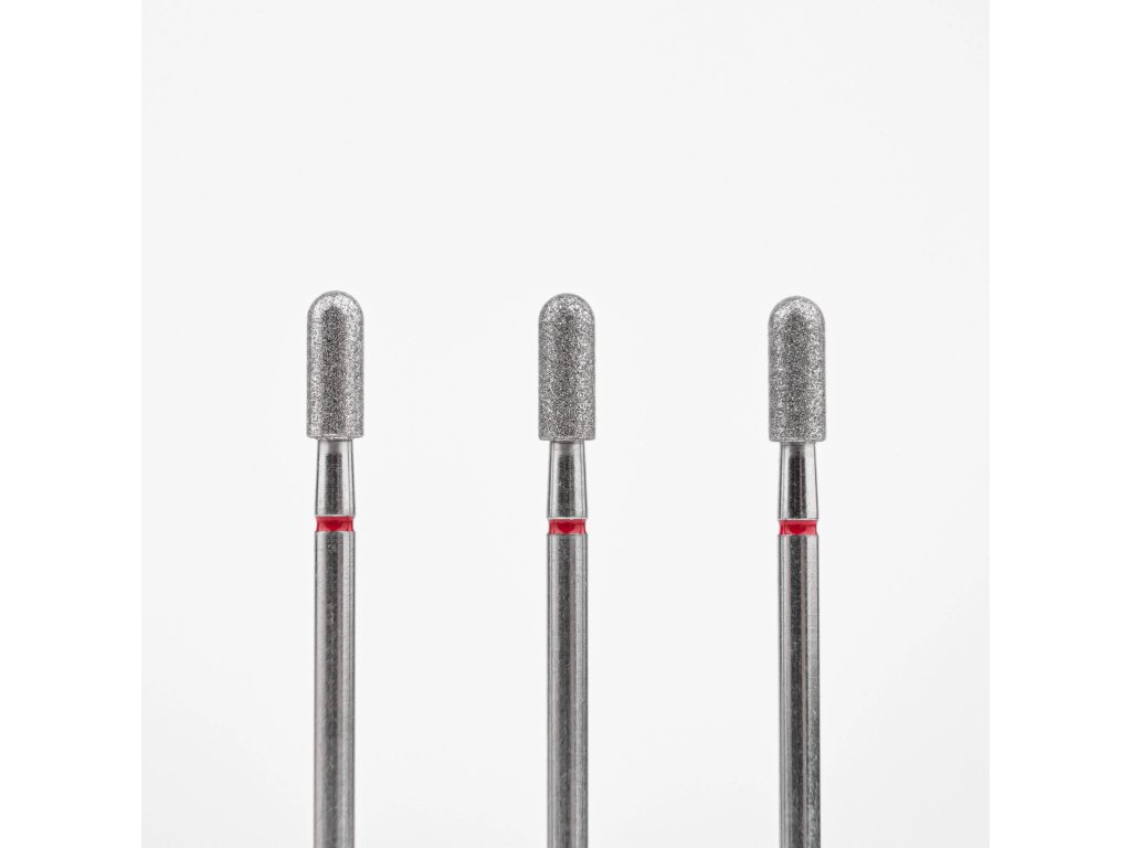 Diamantová fréza jemná ve tvaru válce s červeným označením. Dvojitá vrstva umělého diamantového posypu zajišťuje pomalejší opotřebení a delší životnost. Díky svému jedinečnému tvaru se hrot při práci nezahřívá ani nevibruje.