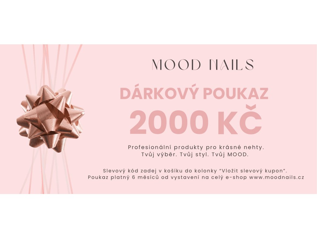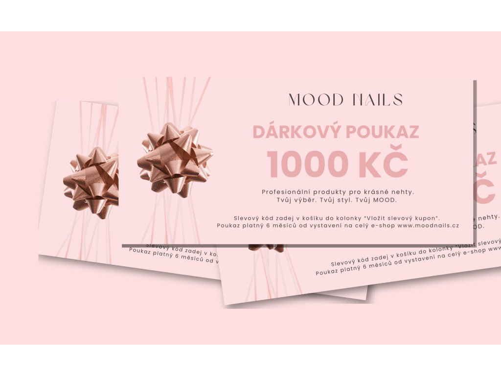 Dárkový poukaz MOOD nails je ideální volbou, když chceš darovat radost a zároveň ponechat svobodu výběru. Platí na veškerý sortiment e-shopu moodnails.cz a potěší začátečníky i profesionálky. Dostupný v hodnotách 1 000 Kč, 2 000 Kč a 5 000 Kč.
